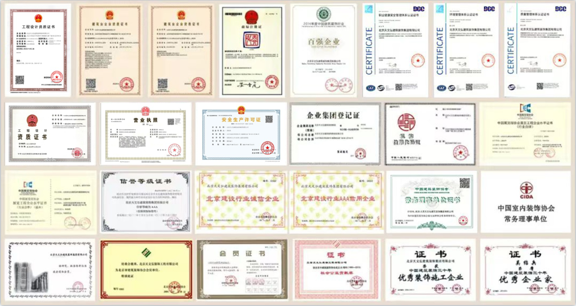 北京天文弘建筑裝飾集團有限公司,始創(chuàng)于1995年,正式成立于 2000年,注冊資本10800萬元??偛课挥诒本┦泻5韰^(qū)寶盛廣場。是建設部核準的國家建筑裝飾設計甲級資質、施工壹級資質的企業(yè);同時具有建筑工程施工總承包貳級、市政公用工程施工總承包貳級、 建筑幕墻工程設計乙級、施工貳級、電子與智能化工程專業(yè)承包貳級、建筑機電安裝工程專業(yè)承包貳級、消防設施工程專業(yè)承包貳級、防水防腐保溫工程專業(yè)承包貳級、古建筑工程專業(yè)承包貳級、展覽陳列工程設計與施工一體化資質壹級、特種工程及鋼結構等多項資質。連續(xù)多年通過了ISO9001質量管理體系、ISO14001環(huán)境管理體系、ISO28001職業(yè)健康安全管理體系認證?,F(xiàn)為阿里巴巴經(jīng)濟體優(yōu)秀供應商、融創(chuàng)·中國戰(zhàn)略合作伙伴、中國建筑裝飾協(xié)會常務理事單位、北京市建筑裝飾協(xié)會副會長單位、中國建筑裝飾行業(yè)百強企業(yè)。是中央國家機關2011-2025年度工程項目定點施工企業(yè)。